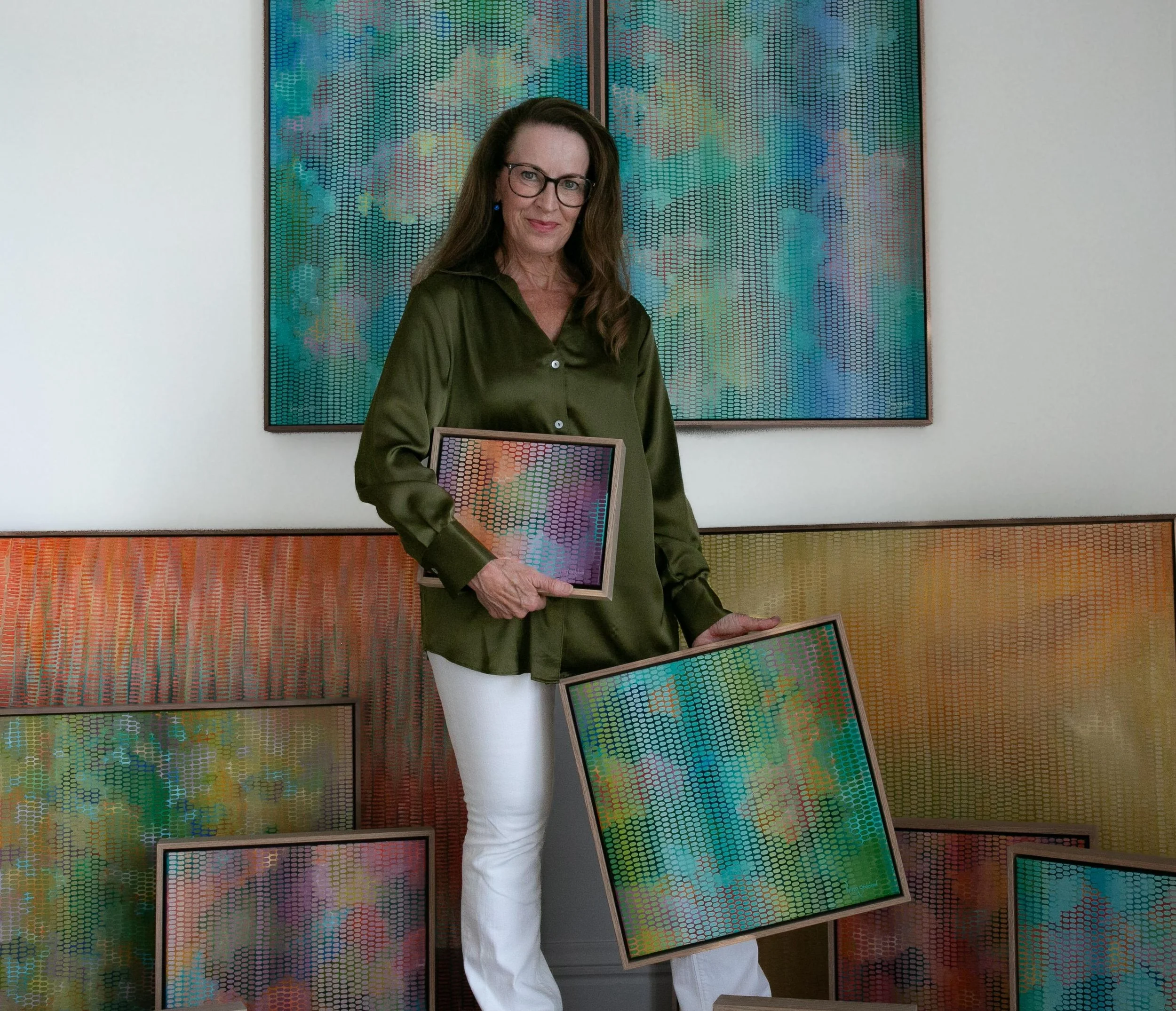 Fearless in her use of colour. Her current body of work is inspired by nature and the innate shapes within the fauna and flora, her love of native flowers, and the beautiful landscapes around the Gold Coast where she lives in Australia. landscapes